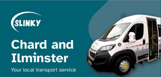 Slinky bus service, Slinky is a special transport service funded by Somerset Council. It picks people up from their homes and takes them to where they need to go. This service is for those who cannot use regular buses or trains. All the vehicles are easy to get into and use. SLINKY – Transport on demand