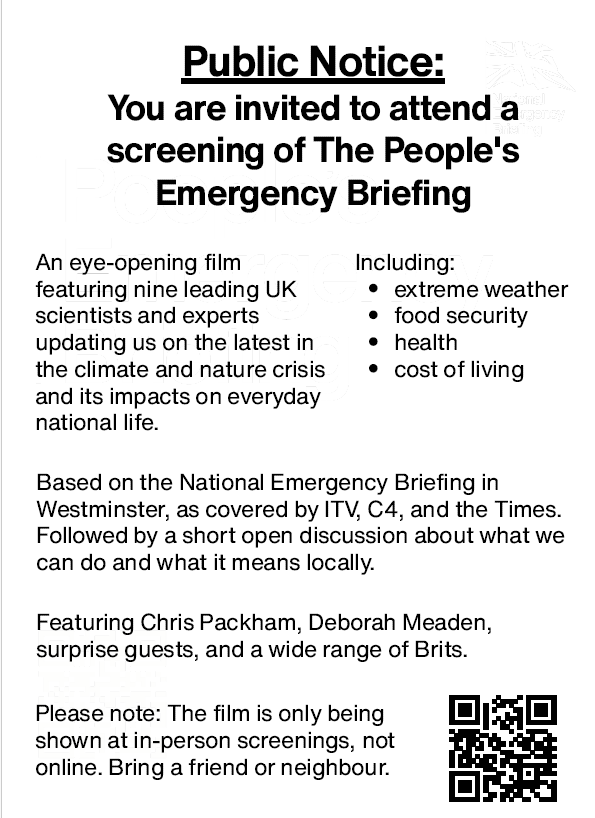 Film screening and discussion – a public information initiative to ensure the UK is fully briefed on the climate and nature crisis.